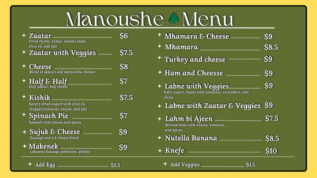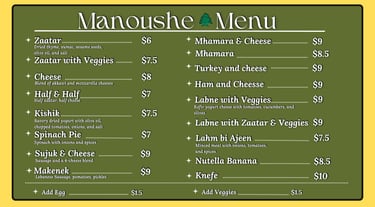 Our menu features a variety of traditional Lebanese Manoushe made with fresh ingredients.